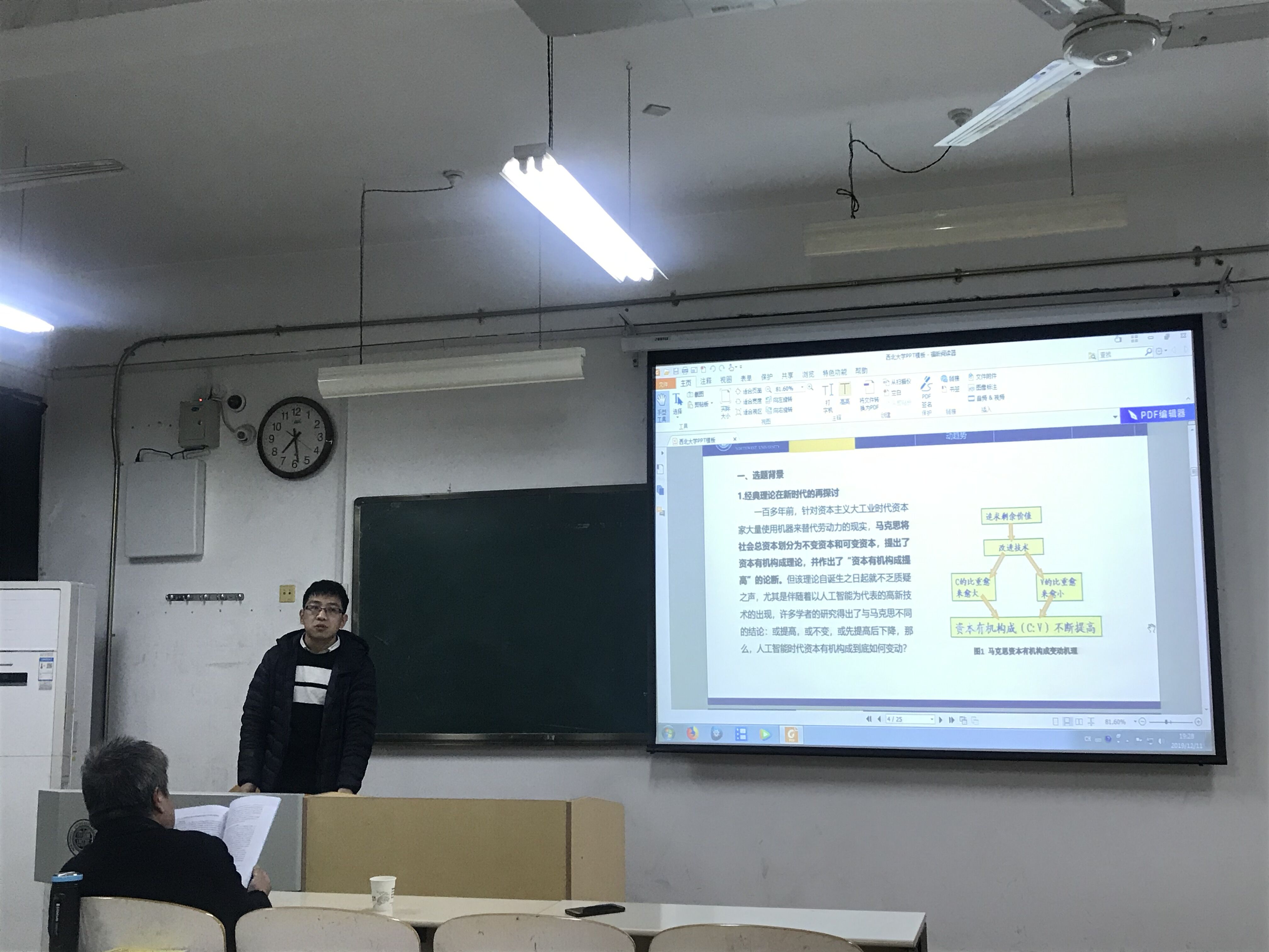 “基地学术课堂”的第一单元为现代经济学理论与方法创新论坛第十六卷第十期,由永利集团3044欢迎光临2017级经济学基地班本科生于家伟对题为《人工智能时代资本有机构成的变动趋势及其启示——基于三次冲击分析框架的考察》的论文进行了报告。马克思的资本有机构成理论正确解释了资本主义下相对人口过剩的现象,随着新一轮技术革命浪潮到来,人类将进入人工智能时代,在新的背景下对资本有机构成的变动趋势进行考察具有重要的理论和现实意义。本文根据人工智能发展的阶段性特征,构建了发达国家和发展中国家资本有机构成变动的三次冲击分析框架,并将之与康德拉季耶夫周期结合进行考察。本文得出了发展中国家资本有机构成变动滞后于发达国家一个阶段的规律,揭示了发达国家和发展中国家在技术革命浪潮中的不等地位,并得出了包括我国在内的广大发展中国家应对人工智能革命冲击的一些启示。杨建飞教授对该论文研究主题的新颖性与独特性予以肯定,并就论文的选题及写作方法给予同学们指导。