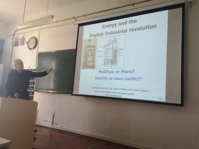2019年10月29日,挪威国家统计局高级经济师安德森·艾克兰应邀为永利集团3044欢迎光临2017级经济学(基地班)及2017级数理经济学实验班学生作题为《能源和英国工业革命》的学术报告,报告在2308教室举行,由岳利萍教授主持。在报告中,艾克兰教授以能源的革新为切入点研究第一次英国工业革命,对马尔萨斯和马克思关于工业革命成因的争论展开论述,并从能源的稀缺性和社会阶级矛盾冲突两个角度进行了解释和分析。