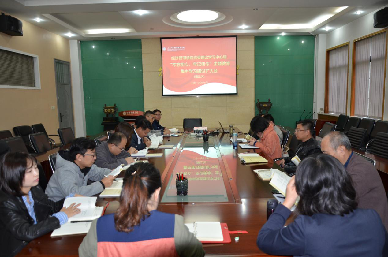 为深入学习贯彻习近平总书记在“不忘初心、牢记使命”主题教育工作会议上的重要讲话精神,10月10日,学院党委在一层会议室召开了理论学习中心组第三次(扩大)会议,学院理论学习中心组成员和全体党支部书记参加本次会议,会议由学院党委副书记赵金哲主持。