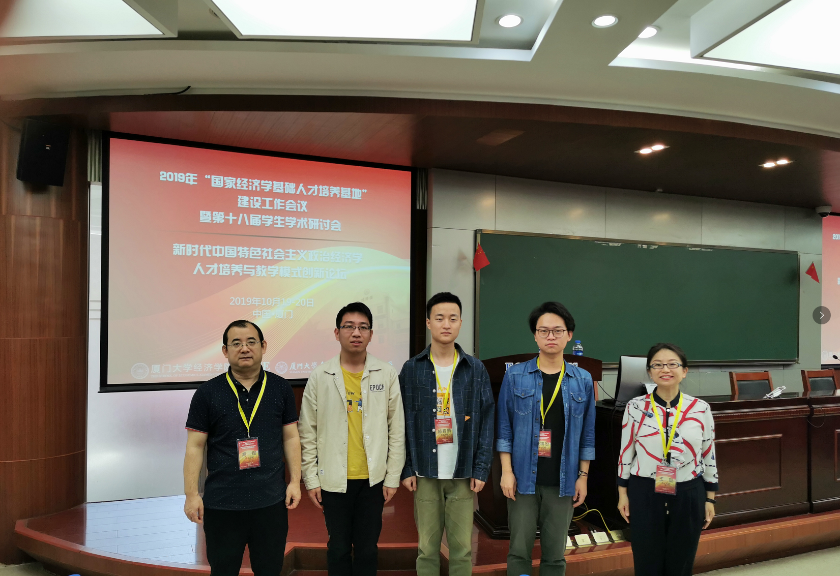 2019年10月19日-20日,2019年“国家经济学基础人才培养基地”建设工作会议暨第18届学生学术研讨会在厦门大学经济学院召开。永利集团官网经济学系主任高煜教授,王聪副教授与张祎盼、于家伟、郝嘉鹏等三位同学参加了会议。