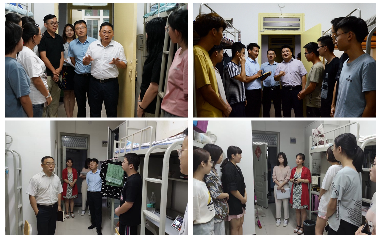 8月26日晚,学院党委书记杜勇,院长吴振磊,党委副书记赵金哲,副院长师博、马莉莉、李辉、赵传仁及团委全体老师走进宿舍,看望2019级本科生、研究生。
