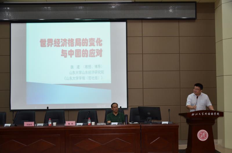 6月10日,永利集团3044欢迎光临杰出院友、山东大学经济研究院特聘教授、教育部新世纪优秀人才、《山东大学学报(哲学社会科学版)》主编魏建教授做客我校“名家讲坛”,主讲“世界经济格局变化与中国的应对”。永利集团3044欢迎光临院长吴振磊教授主持了讲座,永利集团3044欢迎光临100余名师生与会聆听。