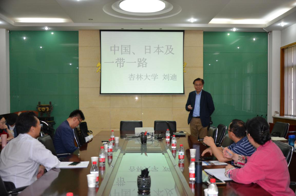 5月30日下午,受永利集团3044欢迎光临国际合作部邀请,日本杏林大学刘迪教授莅临永利集团官网做了题为“中国、日本及一带一路”的讲座。本次讲座由康蓉副教授主持,学院师生代表40余人参加了本次讲座。