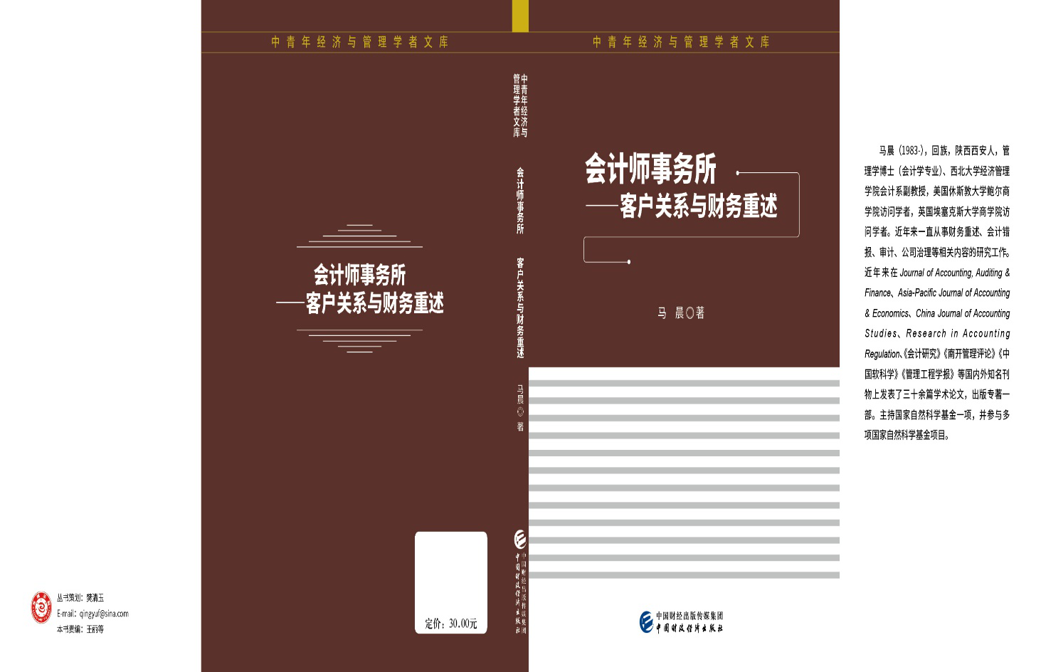 近日,由永利集团官网会计系教师马晨副教授独立撰写的专著《会计师事务所-客户关系与财务重述》出版,该书共7章内容,约12万字。