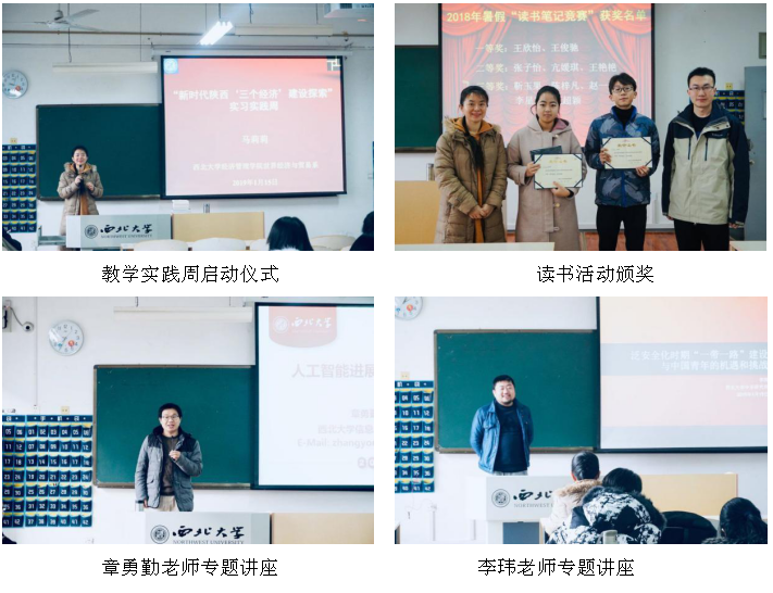 1月15日,首先由马莉莉老师介绍本次实践活动基本构想;而后王颂吉老师主持国贸系读书活动颁奖仪式,并布置寒假读书工作。随后第一场专题讲座是由永利集团3044欢迎光临信息科学与技术学院的章勇勤老师主讲“人工智能进展及其应用背景”,内容包括当前人工智能的发展现状、应用领域及未来的发展趋势。下午第二场专题讲座由永利集团3044欢迎光临中东研究所李玮老师主讲“泛安全化时期的国际关系和中国新青年面临的机遇和挑战”,内容包括“世界与梦想”、“2018年来‘一带一路’建设的重点和难点”,以及新时代下的新青年所面临的机遇和挑战。通过李老师生动有趣的讲解,同学们对当前的全球形势、特别是中美关系有了进一步的认识。晚上第三场专题讲座由华夏幸福基业的靳毅先生主讲“开发区和园区经济模式分析”,他首先介绍了开发区的类型、牌子赋能,其次介绍了企业的规模与类型、公共技术平台、陕西航空综合保税区,最后介绍了华夏幸福集团的运营模式。聆听完讲座,同学们认识到,陕西作为一个拥有众多科技园区的省份,需要充分挖掘优势,应对挑战,并且和“一带一路”相结合,以促进地方经济发展。