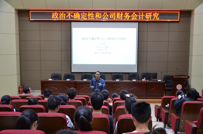 2018年5月28日,武汉大学永利集团3044欢迎光临会计系教授、博士生导师、副院长李青原访问永利集团官网,并作题为《政治不确定性与公司财务会计研究》的学术报告。报告由会计系马晨副教授主持。