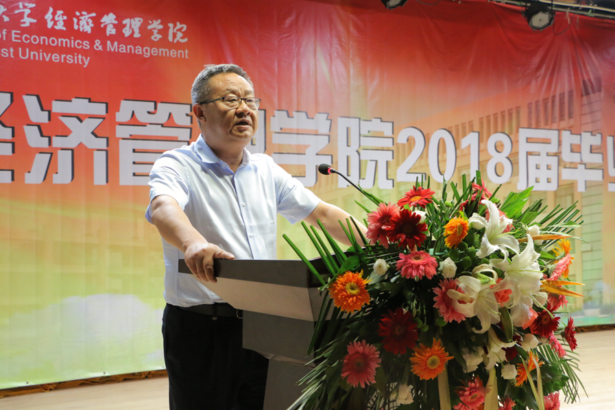 最后,院长任保平教授发表了热情洋溢地讲话,他对全体毕业生顺利完成学业即将踏上人生新征程表达了衷心祝贺,并寄语2018届毕业生要正确认识自己,学会创造属于自己的“故事”,要饱含天下情怀,关注世界,创造价值;要追求更高的人生境界,不断提升自己的品牌价值;他教导同学们还要做好吃苦的准备,迎难而上,艰苦奋斗,努力争取人生新的光彩。相信任院长的谆谆教导和深情寄语会让即将踏上新征程的毕业生受益良多。