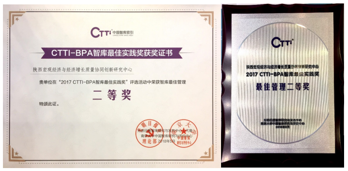 “中国智库索引”(简称CTTI)系统是我国首套全面描述、收集智库数据,为用户提供数据整理、数据检索、数据分析、数据应用等功能的智库索引系统,由南京大学中国智库研究与评价中心联合光明日报智库研究与发布中心联合研发。本次陕西宏观经济与经济增长质量协同创新研究中心获得CTTI最佳智库管理奖,是继2017年度中国西部经济发展研究中心入选CTTI来源智库之后永利集团官网智库建设的又一重要成果。也是陕西宏观经济与经济增长质量研究中心继2017年获得陕西省委宣传部颁发2017年度优秀基地后获得的的又一重要荣誉。