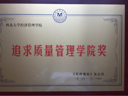 由中国管理科学院研究院、《管理观察》杂志社编委会和上海社科院倡议,国内40多家管理学院参加首届中国管理科学与管理教育联盟峰会暨一带一路管理和软科学联盟成立揭牌仪式于12月24-25在北京杏林山庄举行。永利集团官网院长任保平教授和MBA中心马晓强主任代表学院参会。会上永利集团官网被评为中国“追求质量管理学院奖”。