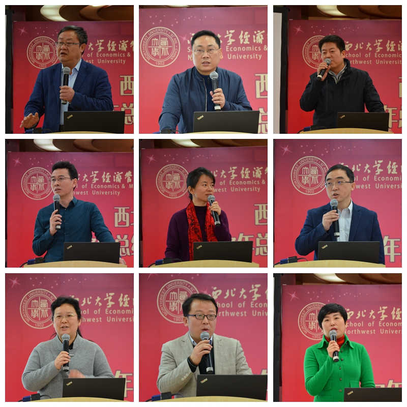 在2017年度工作总结与2018年工作研讨会上,院长任保平对学院2017年取得的重大成果进行了总结。他说,在学校党委和行政的正确领导下,在学校职能部门的支持下,在全院教职工的不懈努力下,学院2017年取得了丰硕成果:理论经济学在全国第四轮学科评估中获得第5名,进入A-和前10%,工商管理一级博士学位授权点获批并进入公示,学院的科学研究、人才培养、高层次队伍建设、服务社会、国际化工作等都取得了突出的成绩,这些成绩的取得来之不易,是全体经管人辛苦汗水的结晶,他代表学院对全院师生表示衷心的感谢。谈到2018年工作设想,他说,学院2018年的工作主题是:深化改革,提升人才培养质量。要对标“二个一流”指标体系,扎实推进学院综合改革,理顺机制、整合资源、突出特色和弥补短板。在学科建设中,提前布局2020年第五轮学科评估,开展学科团队建设,继续凝练学科方向,培养新的学科增长点。要回归大学教育本质,在人才培养上倡导大问题教育,突出学院特色,提高人才培养质量。在科研上要围绕国家重大战略,倡导精品式科研,培育和产出国家级科研成果。在队伍建设中要实施激励和约束相结合的考核机制,不断激发教职工的工作热情。要加强文化引领,以思想政治工作为抓手,营造良好的学院风气,凝聚人心,不断释放办学活力。副院长李辉、马莉莉、师博分别介绍了学院2018年的本科教育、研究生教育和科研工作思路,院长助理康蓉、马晓强、岳利萍分别介绍了学院2018年的国际化、MBA/EMBA和西部中心工作思路,院党委书记杜勇介绍了学院2018年的综合改革工作思路。教师党委工作部部长曹振纲、社科处处吴振磊、研究生院副院长徐哲峰分别对学院2018年综合改革工作思路、科研工作思路和研究生教育工作思路进行了点评,并提出了建设性的意见。研讨会由学院副院长李一凡主持。