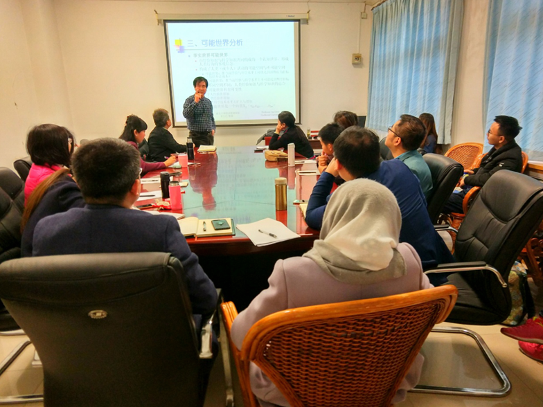安教授主讲的题目是“论人的可能世界及其商业行为”。在介绍哲学理论中对于世界的已有划分方式后,他通过利己主义和利他主义两个维度界定了价值可能世界和事实可能世界的各种不同情况,并由此推及到人类商业行为的不同情况。这些想法对于理解当下中国企业的商业伦理和行为决策都具有一定启示意义,也引发了在场的老师和同学的浓厚兴趣和讨论。