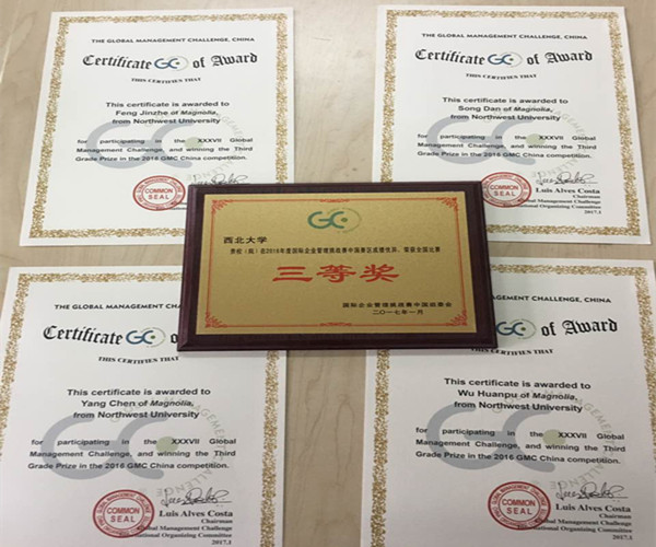 祝贺永利集团官网2016级MBA学员:冯瑾哲、吴洹铺、宋丹、杨晨在2016年国际企业管理挑战赛(GMC)中经过热身赛、初赛,在2000多支参赛队、10万余名参赛者中披荆斩棘、脱颖而出进入复赛,荣获2016年度国际企业管理挑战赛中国赛区全国三等奖,为永利集团官网摘得三等奖荣誉。