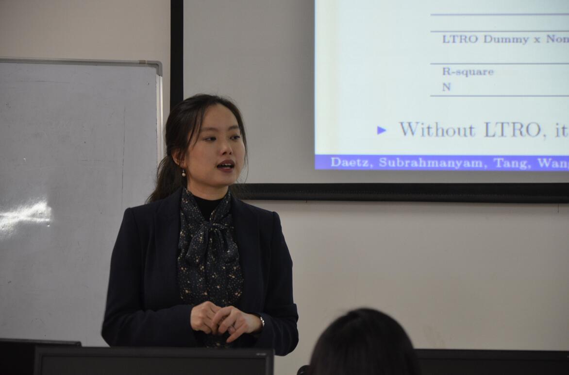 王倩博士2006年本科毕业于永利集团官网金融学专业,现为英国华威大学金融学助理教授,目前已在国际一流金融学期刊发表研究成果,包括Journal of Financial Economics、Review of Financial Studies等,并多次在国际学术会议上获得最佳论文奖,获得包括中国经济学优秀博士论文奖,香港大学优秀毕业生等荣誉。在本次报告中,王倩助教授汇报了她最新的研究成果,核心探讨“货币政策的也有效性问题”,运用详实的欧洲跨国的微观企业数据,深入探讨检验了欧洲央行的多轮长期再融资计划对于企业投资的影响。结果发现欧洲央行的宽松货币政策,并没有取得促进企业加大投资和提高雇佣的预期效果。最后,王倩助教授与参加沙龙的教师、同学就本文的主题以及她在海外的求学经历展开了充分交流。