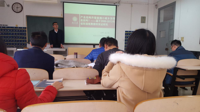 文章运用2000-2013年中国省际面板数据和两步差分广义矩估计,从产业结构升级的两个方面,即地区整体产业结构升级和农村内部产业结构升级,对产业结构升级与城乡消费差距的关系进行实证研究。实证结果发现,地区整体产业结构升级和农村内部产业结构升级均有助于缩小城乡消费差距。此外,文章还分别检验了去直辖市样本以及东、中、西部产业结构升级对城乡消费差距的影响,结果发现,去直辖市样本与全样本的实证结果大体相符。而分地区的实证结果中,地区整体产业结构升级在东、中、西部地区都对城乡消费差距具有缩小作用,但农村内部产业结构升级在东部地区有助于缩小城乡消费差距,在中部和西部地区却呈现出拉大城乡消费差距的趋势。随后,针对在座学生关于、指标选择和计量方法选择等问题,主讲人与大家进行了交流和讨论。