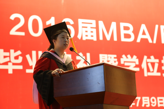 学院副院长何爱平教授发表讲话。她希望西大MBA学子勇于担当时代大任,在工作岗位上开拓进取,恪守诚信,成就事业,推动文明进步,以优异卓越的商业表现来彰显永利集团3044欢迎光临MBA的价值,努力做人文MBA的践行者,做新商业风范倡导者,做未来社会的引领者。教师代表李辉副教授与毕业生们分享了他的临别寄语,一是要学会管理好自己的时间、健康与情绪,二是既要讲规则也要讲原则,三是做正能量的传播者,带着西大的精神与思想,走得更高、更远。2013级孔繁荣同学代表所有毕业生发表了毕业感言,回顾了在校期间的美好记忆,也为毕业生、学院和母校送上了美好祝福。