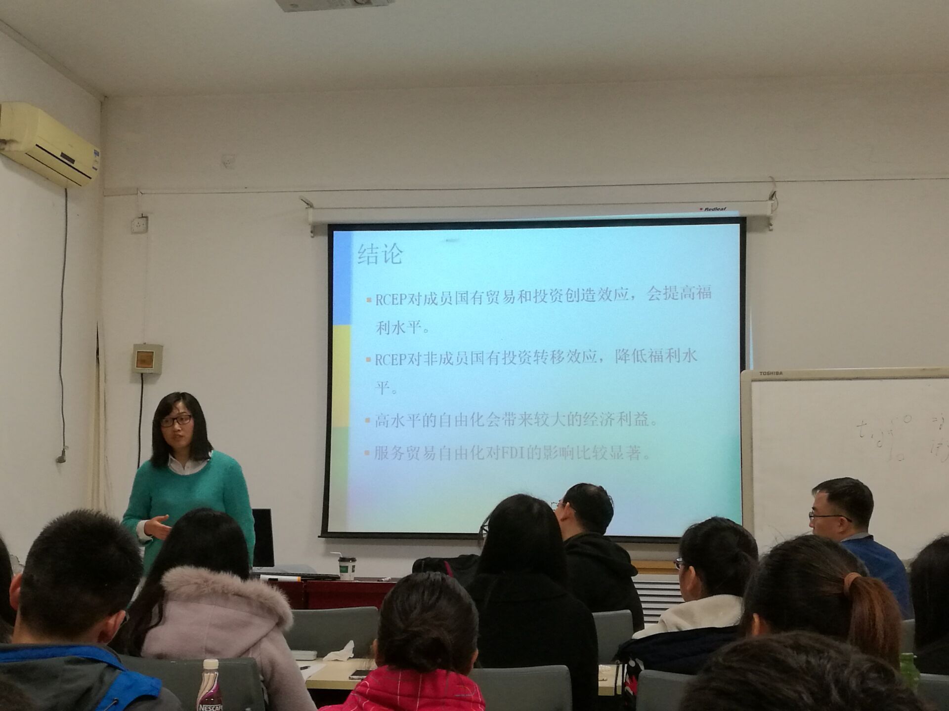 2016年3月23日晚,由经济学系和数理经济与统计系主办的现代经济学理论方法与创新论坛第十一卷第十一期在8202教室顺利举行。此次论坛主题为“Analyzing Effects of RCEP on FDI in a Firm Heterogeneity CGE Framework”,论坛由经济学系主任高煜教授主持,刘瑞明副教授担任评论人,世界经济与贸易系李侨敏博士担任主讲人,永利集团3044欢迎光临青年教师、本科生和研究生30余人参加了此次论坛。