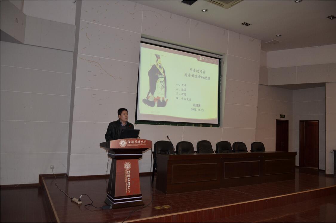 11月25日下午4时,永利集团官网“学问与人生”学生素质教育系列讲座第十五讲在金海恒业报告厅举行,本场讲座邀请了永利集团3044欢迎光临文化遗产学院教授、博士生导师段清波为永利集团官网学生作了题目为“从秦陵考古看秦始皇帝的理想”的讲座,讲座由院党委副书记李一凡主持,学院师生共计260余人到场听取讲座。