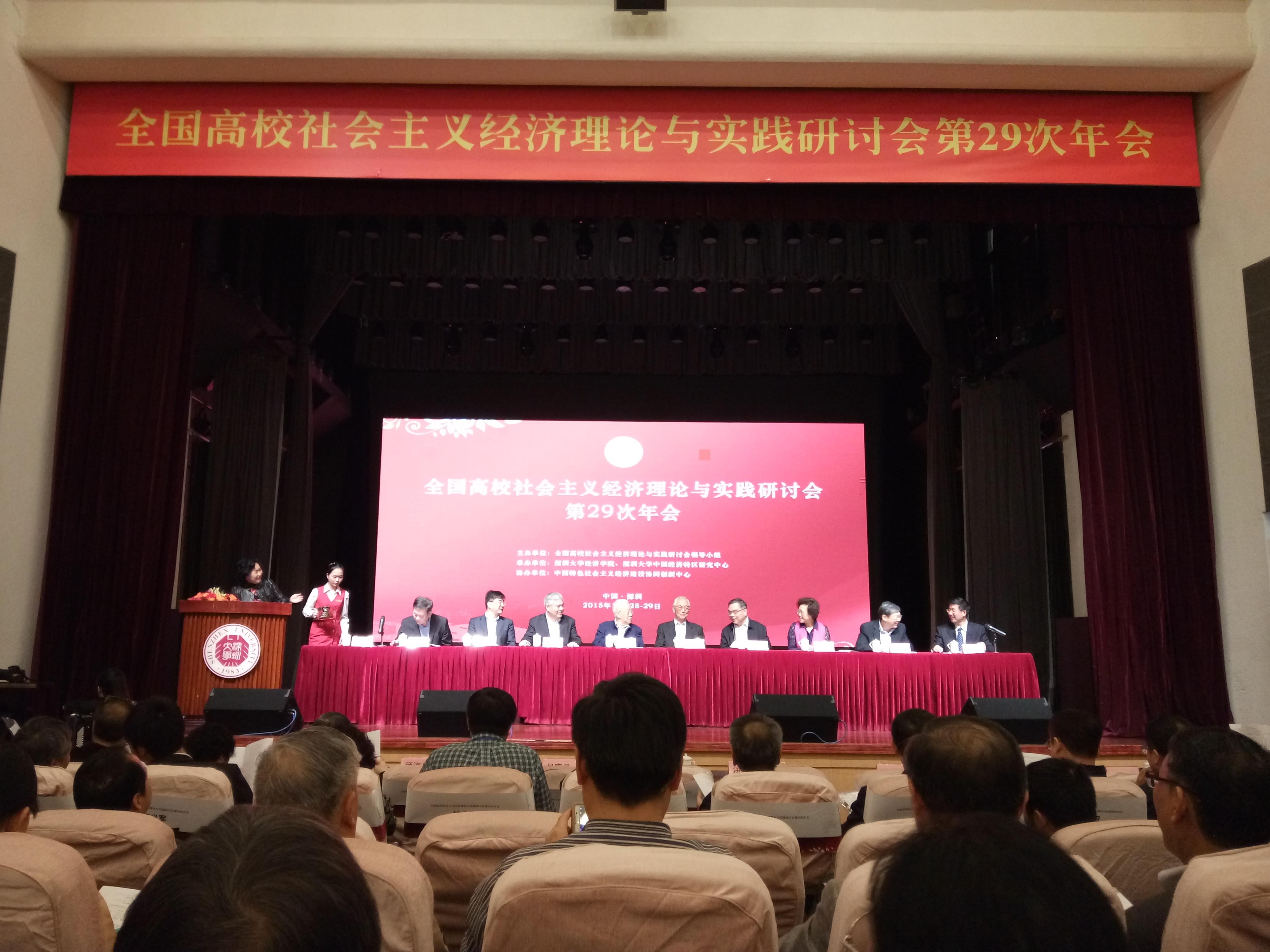 本次年会由全国高校社会主义经济理论与实践研讨会领导小组主办,深圳大学经济学院、深圳大学中国特区研究中心承办,中国特色社会主义经济建设协同创新中心协办。著名经济学家卫兴华、吴宣恭、洪银兴、顾海良、刘伟、魏杰等参加了研讨会。来自清华大学、北京大学、中国人民大学、复旦大学、南京大学、永利集团3044欢迎光临、西南财经大学等全国80余所高校的200余名代表聚集一堂,围绕中国经济新常态的理论与实践、“四个全面”总布局的理论与实践、“一带一路”战略与新一轮高水平对外开放、中国经济学的创新与发展等主题,进行了深入研讨和广泛交流。
