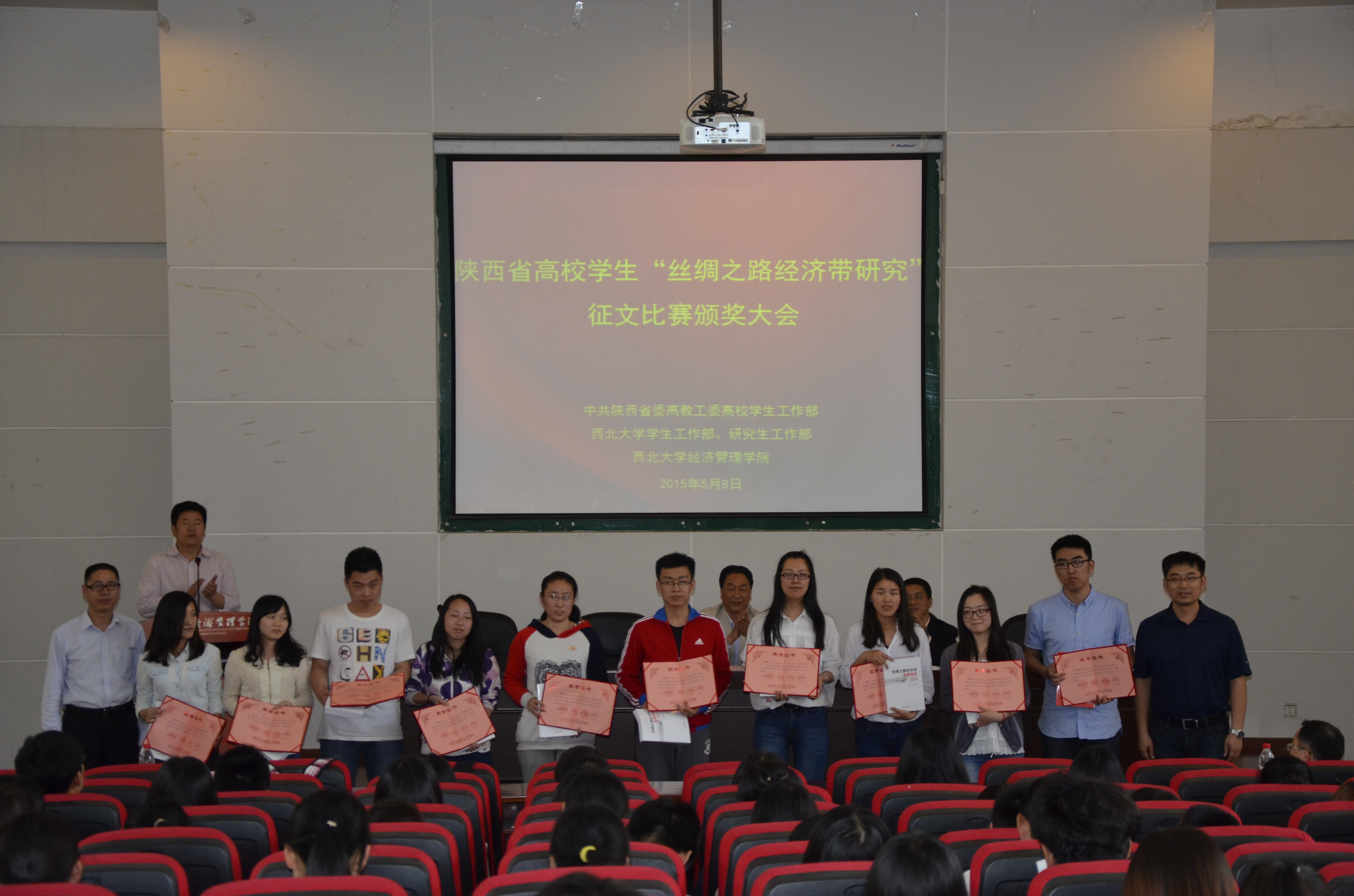 5月8日下午,由中共陕西省委高教工委高校学生工作部、永利集团3044欢迎光临学生工作部、永利集团3044欢迎光临研究生工作部、永利集团3044欢迎光临主办,永利集团3044欢迎光临具体承办的全省高校学生“丝绸之路经济带研究”征文比赛颁奖大会在金海报告厅隆重举行,校党委常委、纪委书记李邦邦出席大会,校学生工作部、研究生院、永利集团3044欢迎光临相关负责人及师生代表共计250余人参加了大会。