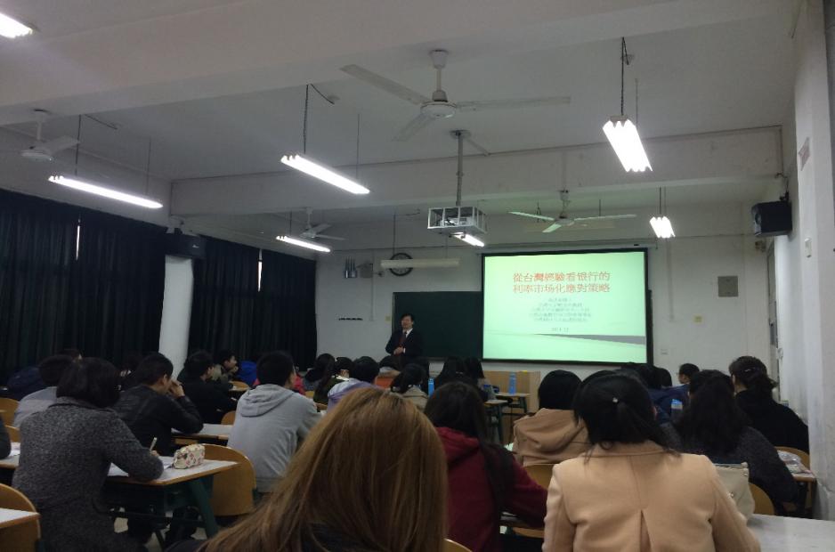 2015年3月17-18日,台湾大学金融学黄达业教授应邀校访问永利集团官网。访问期间,黄达业教授为永利集团官网金融学等专业本科生、硕士研究生做了题为《从台湾经验看银行的利率市场化应对策略》的讲座,通过分析台湾地区30年来银行业发展的历史及经验教训,重点展示了台湾银行业平均加权存放款利率变动趋势、台湾银行业主要收入变动趋势,对比不同国家与地区利率市场化的进程,介绍了利率市场化下银行的战略。他还与学院高培中心与相关人员进行座谈,重点介绍了“AFMA高级金融管理师”项目。