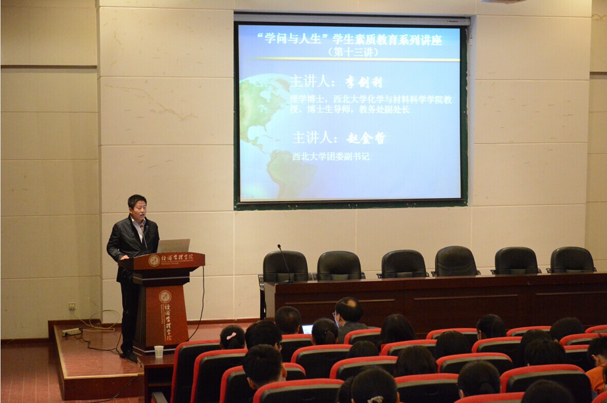 接下来,李剑利教授就大学生创新创业训练计划作了详细解读,李教授首先讲解了实践教学的相关内容,指出实践教学与传统教学的不同,并介绍了实践教学的重大意义,以此引出创新培养。随后李教授就大学生创新创业训练计划项目作了讲解,他介绍了创新创业的相关内容和大学生创新创业训练计划的两个平台,重点讲解了创新创业计划的训练目标,实施原则。随后李教授根据自己的教育教学实践,介绍了几个非常有代表性的创新创业的事例。最后,李教授给在场学生就如何提高自己的创新和学术能力提出了三点意见:1.想法是核心,要学会思考;2.重视研究方案的设计;3.撰写学术论文,语言表达能力一定要过硬。