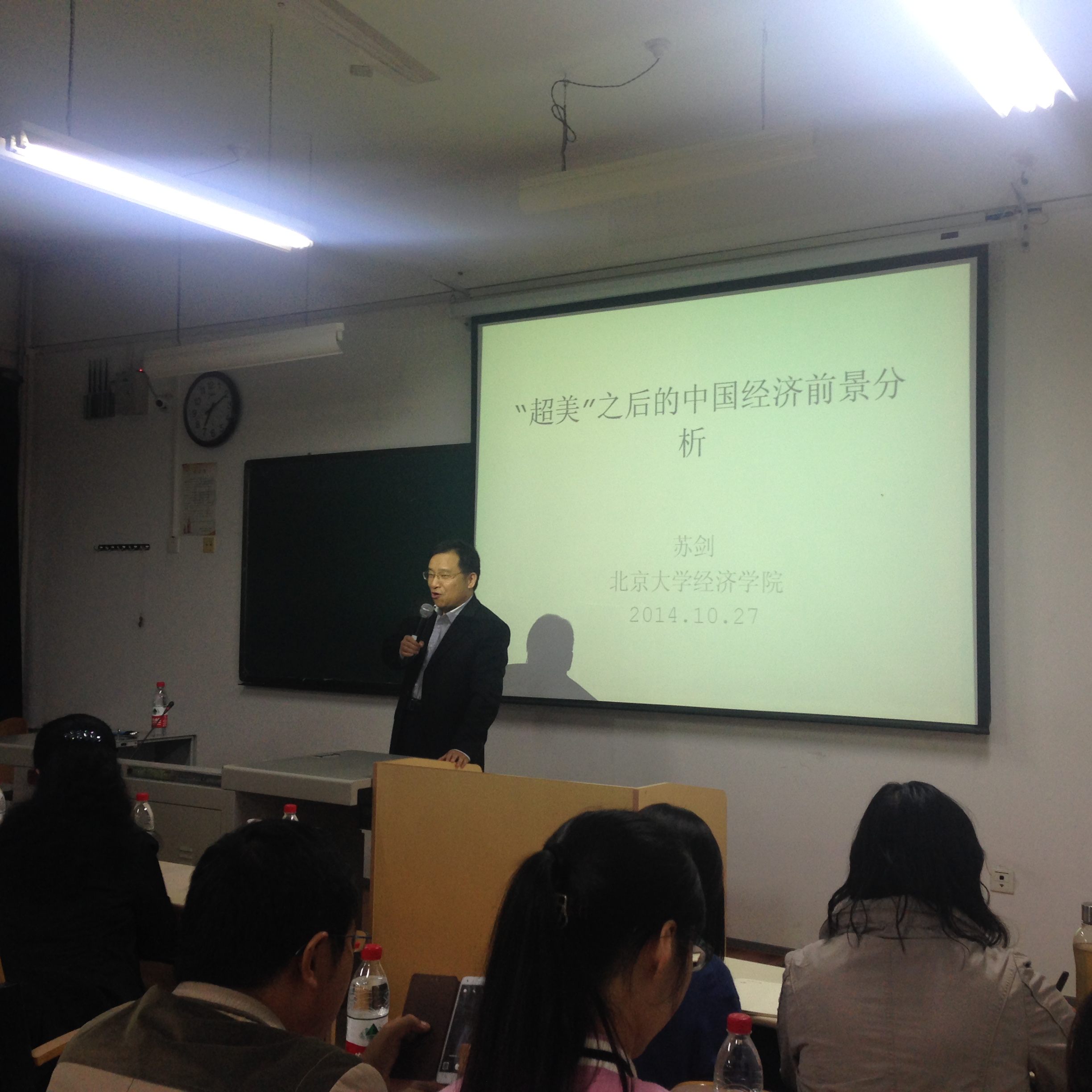 10月27日下午,永利集团3044欢迎光临经济类教师学术沙龙第10期(总第55期)暨现代经济学理论与方法创新论坛第十卷第十八期、研究生学术月活动专家讲坛(五)在长安校区永利集团3044欢迎光临2306举行。本次沙龙邀请北京大学经济学院苏剑教授围绕“超美之后中国经济的前景分析”主题与60余名教师与博硕士、本科生进行了学术交流,活动由何爱平教授主持。