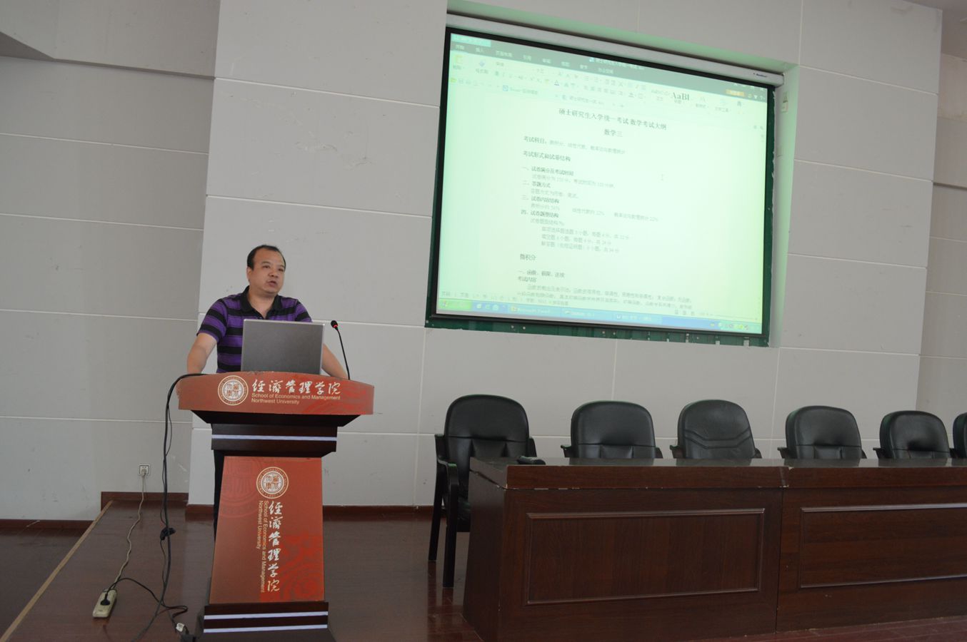 会议分为两个阶段,第一阶段是老师辅导,张博副教授介绍了考研中数学科目的题型及复习方法,张老师认为数学的备考应分为三个阶段:首先应清楚考试大纲中对知识点的考察要求,其次按教材要求有针对性的做练习题,最后要加强模拟试题练习,熟悉掌握各种题型。安立仁教授强调考研首先应弄清楚目的性,理性思维,不要跟风,如果决定考研,就要持之以恒,打牢专业知识点,系统掌握专业知识。王满仓教授指出考研学生要先了解报考学校专业课考察的方向和重点,有的放矢,此外王老师还介绍了专业课考试题型及答题方法,讲授了复习方法。何爱平教授指出考研学生选择报考学校时要准确定位,不要好高骛远,参考书目的选择要有针对性,要将报考院校的专业优势与自身特长和学习兴趣相结合,做出合理的选择。