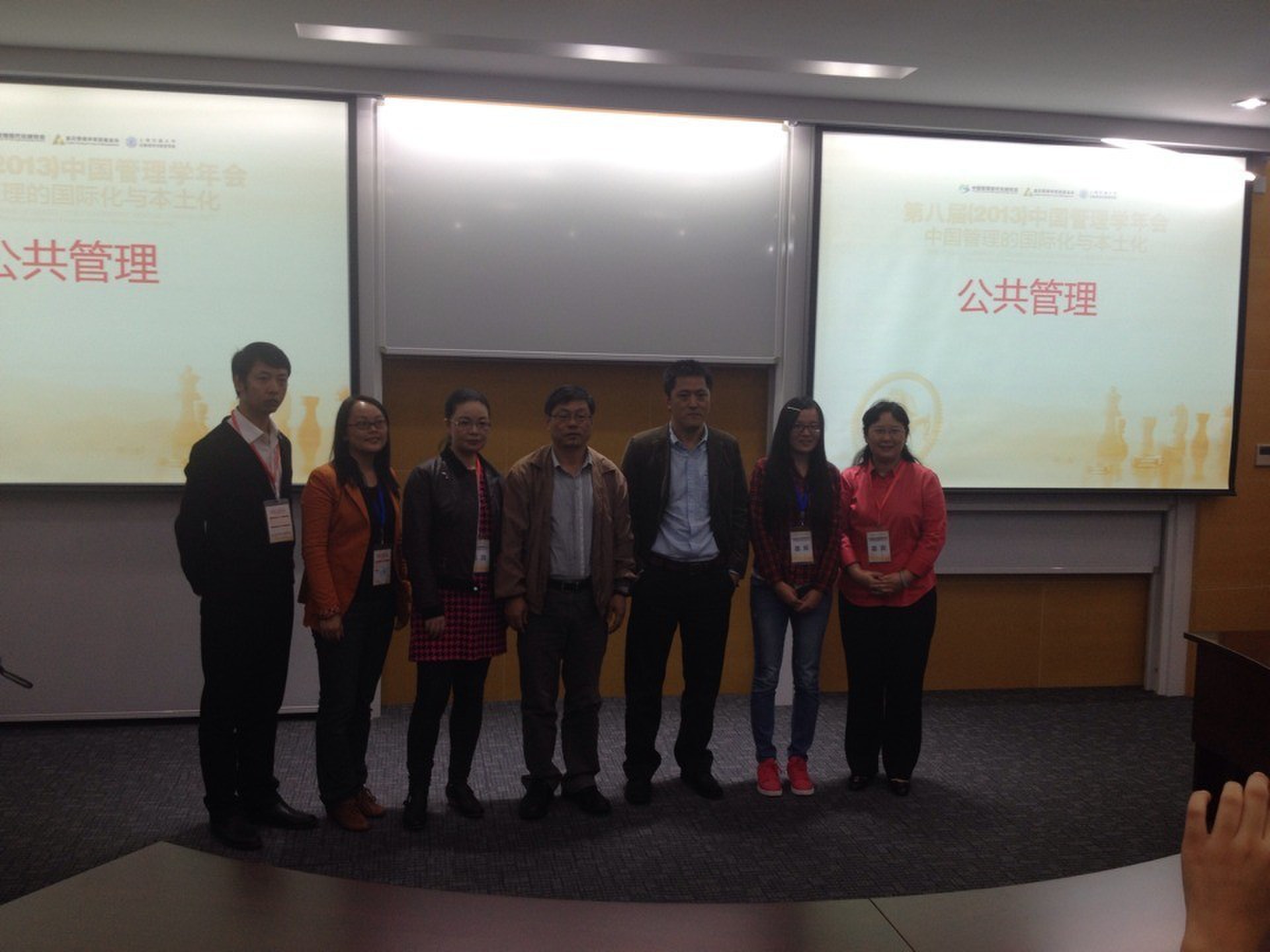 11月8日-9日,永利集团官网教师陈关聚副教授、康蓉副教授、张宸璐博士等参加了在上海交通大学举行的“第八届(2013)中国管理学年会”。本次会议永利集团官网共有4篇文章录用,分别是《家族主义困境、家族权威与企业绩效》(作者:葛枫,任保平)、《股权激励、薪资外部公平与激励效率》(作者:陈关聚、安立仁、张宸璐)、《农民工讨薪冲突及其管理——基于创造性冲突解决途径模型的分析》(作者:康蓉、王玉莲)、《基于联合双元的多维知识搜索平衡战略及其创新绩效研究》(作者:张晓棠、安立仁),涉及“创业与中小企业管理&公司治理”、“组织行为与人力资源管理”、“公共管理”、“技术与创新管理”四个管理研究方向。