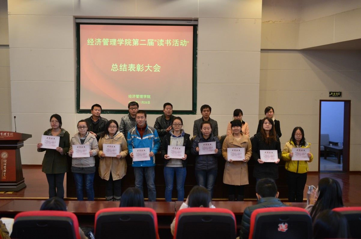 永利集团官网第二届“读书活动”于5月中旬开始,10月中旬结束。其中5月至7月为阅读交流阶段,8月为实践调研阶段,9至10月为成果提升和总结阶段。院学生工作领导小组根据“读书活动”方案要求,以“导师荐读”的方式邀请学院教授推荐经济类、管理类、人文经典类书籍各50本,向全院学生公布,并依据学生选读书目组建读书小组148个;选拔了24名优秀研究生,给每个读书小组配备一名研究生担任指导员,帮助本科生读透读懂选读书目;同时邀请青年教师不定期为同学进行读书辅导,为同学们答疑解惑。在为期五个月的活动中,各读书小组围绕着“读书引领优良学风”主题教育活动、“网上读书会”活动。“我的大学”读书报告会活动、读书心得交流评比活动、“读书与实践”调研报告撰写活动等五项主题活动,共开展读书活动390次,通过微博、人人等网络媒体发布读书活动信息1195条,撰写读书心得3585份,调研报告148份。活动中评选出的“优秀读书心得”将陆续在《经管学院报》、《经济视窗》等杂志报纸上刊登,并汇编成册。部分调研报告现已直接转化成为永利集团3044欢迎光临“大学生创新创业训练计划”项目。