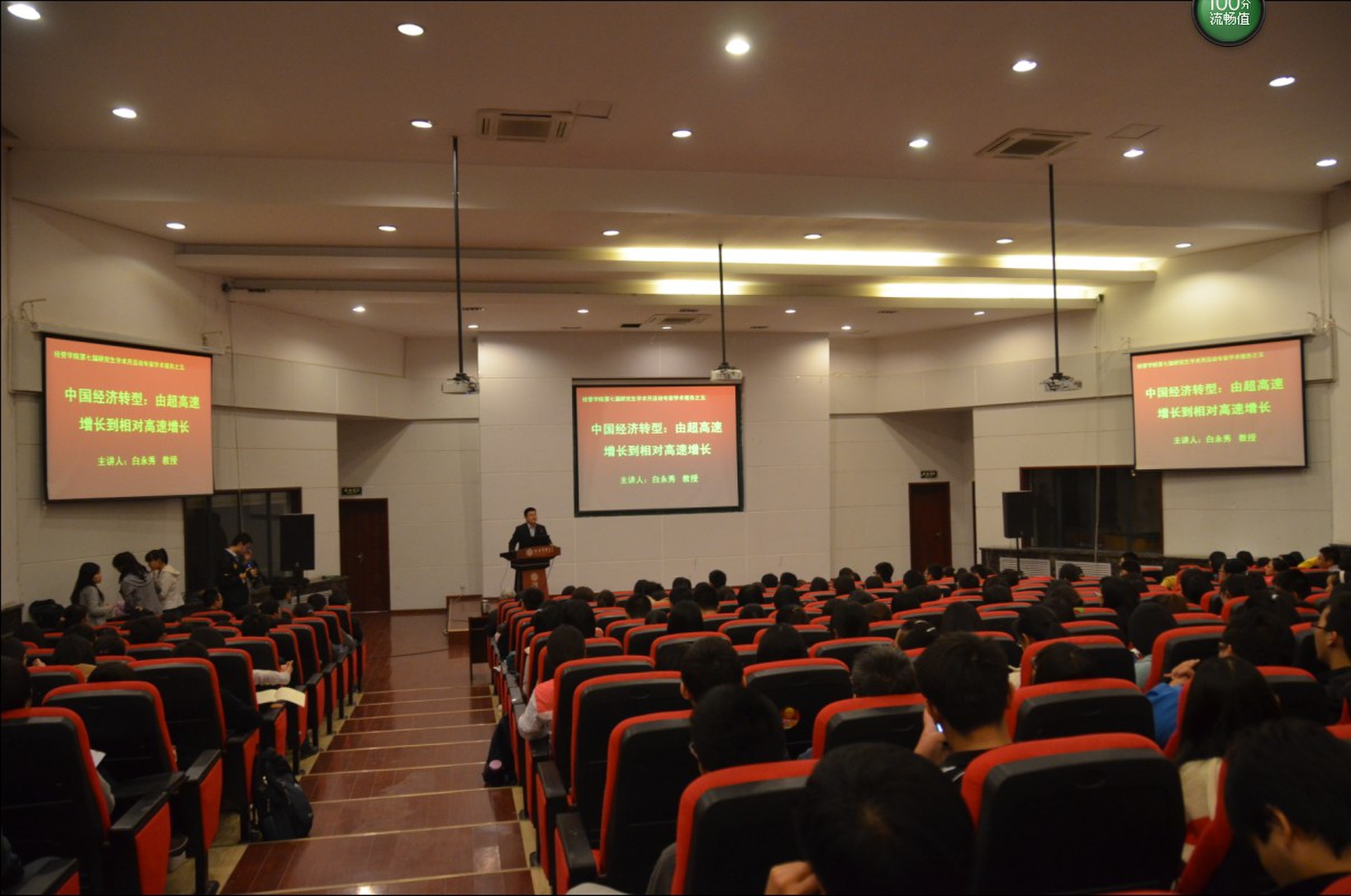 10月24日晚7点,永利集团官网第七届研究生学术月活动专家报告会之五在金海恒业报告厅举行,永利集团3044欢迎光临学术委员会副主任、永利集团3044欢迎光临学术委员会主席白永秀教授应邀作了题为《中国经济转型:由超高速增长到相对高速增长》的学术报告。报告会由副院长吴振磊副教授主持,永利集团官网部分教师、研究生和本科生300余人到现场聆听了报告。