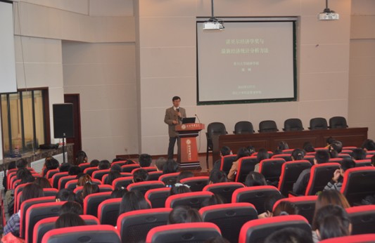 3月6日,日本香川大学经济学教授姚峰应邀来永利集团官网为师生作了题为《诺贝尔经济学奖与最新经济统计分析方法》的学术报告。学院部分青年教师和经济学系、数理经济与统计系学生200余人参加了活动。报告会由经济系主任何爱平教授主持。