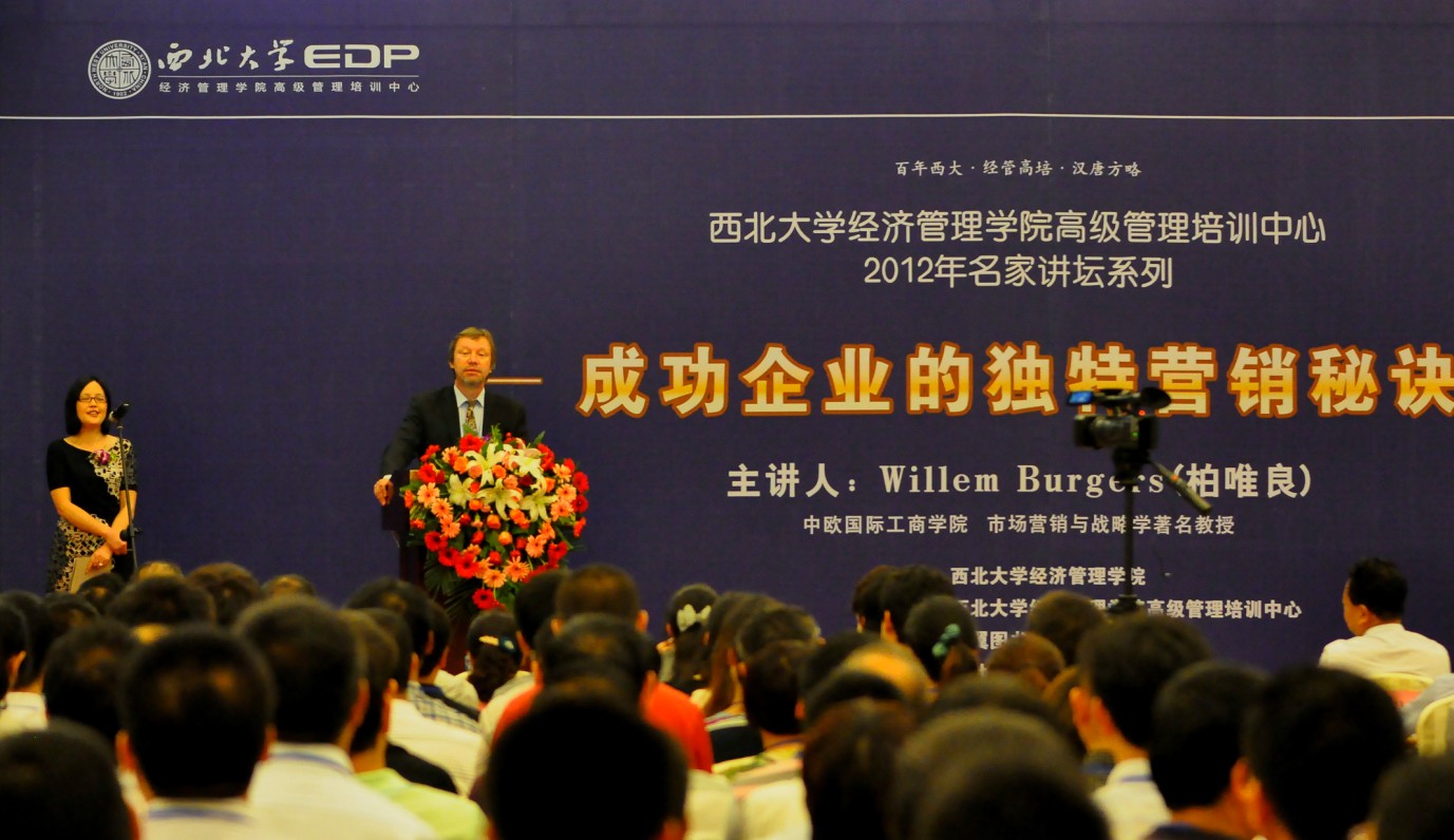 6月2日,由学院高培中心举办的2012年名家讲坛系列第三期在西安绿地笔克国际会展中心举行。本次讲坛邀请了曾在中欧国际工商学院执教20年、且年年均被评为该校最受欢迎的市场营销战略学教授Willem Burgers(柏唯良)先生担任主讲嘉宾。我省部分知名企业、高校、往届校友、中欧商学院部分在陕学员600余人出席了活动。学院院长任保平教授应邀出席了讲坛并在活动中讲话。