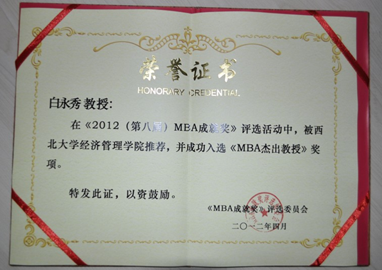 由全国MBA教育指导委员会指导,品牌时代国际传媒、MBA地带网站等10余家主流财经媒体共同举办第八届《MBA成就奖》暨第八届“未来商业领袖在中国的成长”高层论坛于4月20日在北京文津国际酒店隆重举办。我校永利集团3044欢迎光临白永秀、张晓明获得第四届中国“MBA杰出教授”,刘鑫、张光耀、王娟、王瑞明、乔大林、杨立峰六位MBA毕业生获得第八届“MBA成就奖”。此次盛会发布了永利集团3044欢迎光临、中国人民大学、浙江大学、武汉大学、中国科学技术大学、西安理工大学等几十所国内知名学院推荐的40余名和14名MBA杰出教授入选名单。
