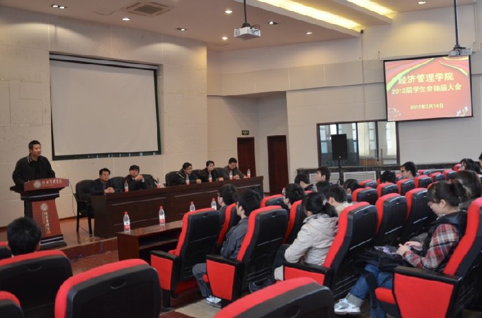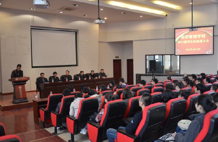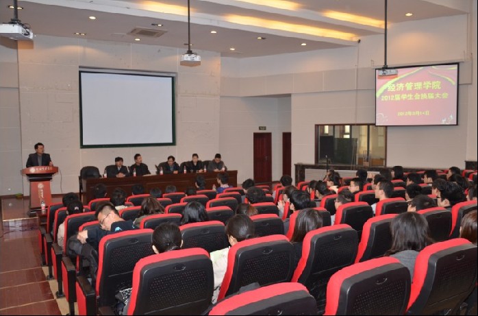 最后王宝书记作了总结讲话。在讲话中王书记主要强调三点:首先对上届学生会的工作表示了肯定和感谢,对当选新一届学生会的干部表示了祝贺;第二对新一届学生会提出一点希望:期望学生会能够协助学院老师一起不断提高学院的素质教育水平,增强学生的综合素养和创新能力,最终建立与经管学院学术品牌相匹配的素质教育品牌。一点共勉:要时刻树立满怀热情、服务师生的信念、永远发扬经管学院永争第一的精神;第三将本年度学院党委工作的八条重点做了通报,使学生会可以有的放矢的开展工作。