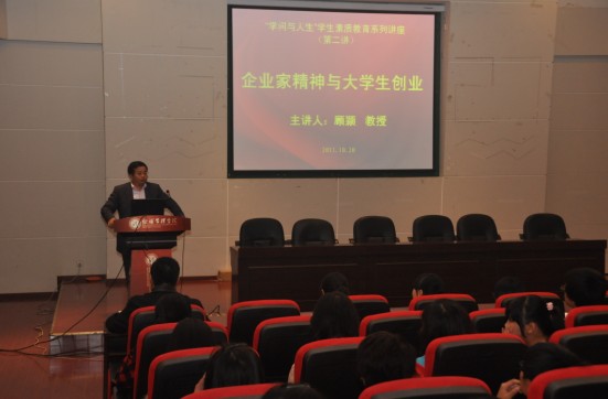 顾教授专业细致的讲解让大家对企业家精神和大学生创业有了更新的认识,赢得了大家热烈的掌声。