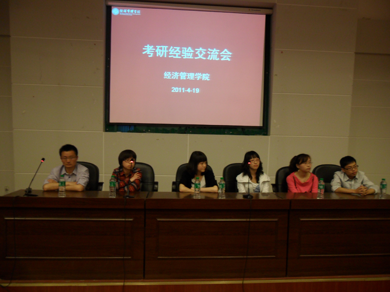 由院研究生会和学生会主办的考研经验交流会于4月19日在金海报告厅举行。参加此次交流会的有院团委书记马金保老师,院研究生会成员以及各年级有意向考研的本科同学。交流会由研究生会论坛部部长张爽同学主持。