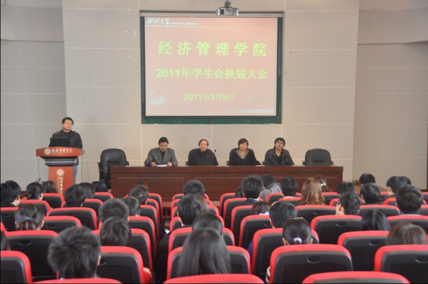 3月9日下午,永利集团3044欢迎光临2011年学生会换届大会在金海报告厅举行,院党委书记薛来前、副书记樊涛,院团委书全体老师及学生会全体成员参加了本次会议,会议由院团委书记马金宝老师主持。