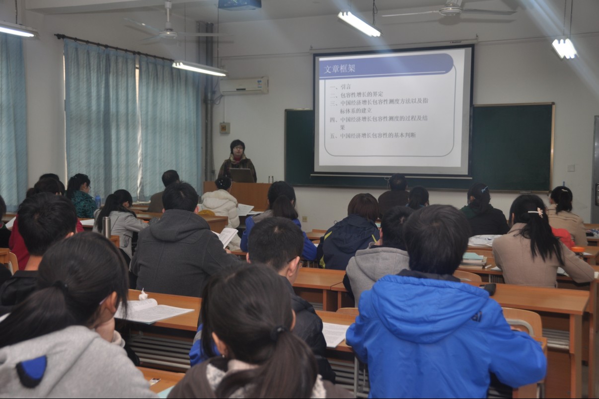 由学院经济学系主办的“现代经济学理论与方法创新论坛”第七卷第九期3月2日下午2点在学院8213教室举行。2010级数理经济学班、2009级经济学基地班、2010级的部分硕士生和博士生参加了此次论坛。此次论坛由学院经济学系宋宇副教授主持,经济学系刘燕妮博士评论,2010级西方经济学魏婕博士主讲,题目为“中国经济增长包容性的测度:1978—2009”。
