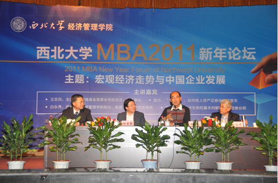 2010年12月18日下午2:00,由永利集团3044欢迎光临主办,永利集团3044欢迎光临MBA教育中心承办,深圳市上才商务培训中心协办的2011年新年论坛在永利集团3044欢迎光临太白校区大礼堂隆重举行。本次论坛邀请永利集团3044欢迎光临校友、全国社会保障基金董事会党组成员、副理事长、博士生导师王忠民教授、永利集团3044欢迎光临院长、博士生导师白永秀教授分别做了精彩的报告。永利集团3044欢迎光临副校长、博士生导师任宗哲教授及校各职能处室、MBA联合会嘉宾、永利集团3044欢迎光临教师以及MBA学员共600余人参加了论坛。论坛由永利集团3044欢迎光临MBA教育中心主任、博士生导师惠宁教授主持。
