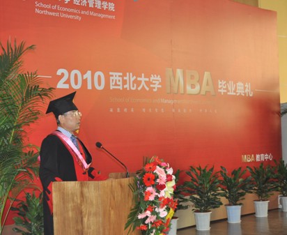 接着,校研究生处副处长刘景钱副研究员宣读2010届MBA学员授予学位情况,决定授予安春雨等178人工商管理硕士学位,授予白彩霞等75人陕西工商管理硕士毕业证书。并预祝同学们在今后的人生旅途中努力学习、不断进取、勇于创新、捷报频传!