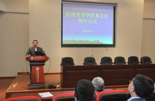 2010年4月12日下午,在南校区经管学院金海恒业报告厅,经管学院召开全院教职工大会。任保平副院长向全院教职工做2010年学院工作要点及加强本科教学工作的报告。并对在学校教学检查工作中永利集团官网出现的重大教学事故和相关人员进行了全院通报批评,宣读了学校和学院的处理决定。要求永利集团官网教师应严格遵守学校和学院的各项教学教务管理规定,认真教书育人,不断提高永利集团官网的教学水平和教学质量,促进学院各项事业的进一步发展。