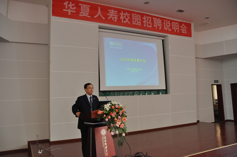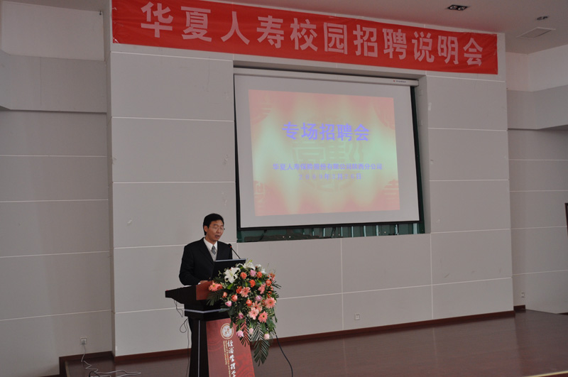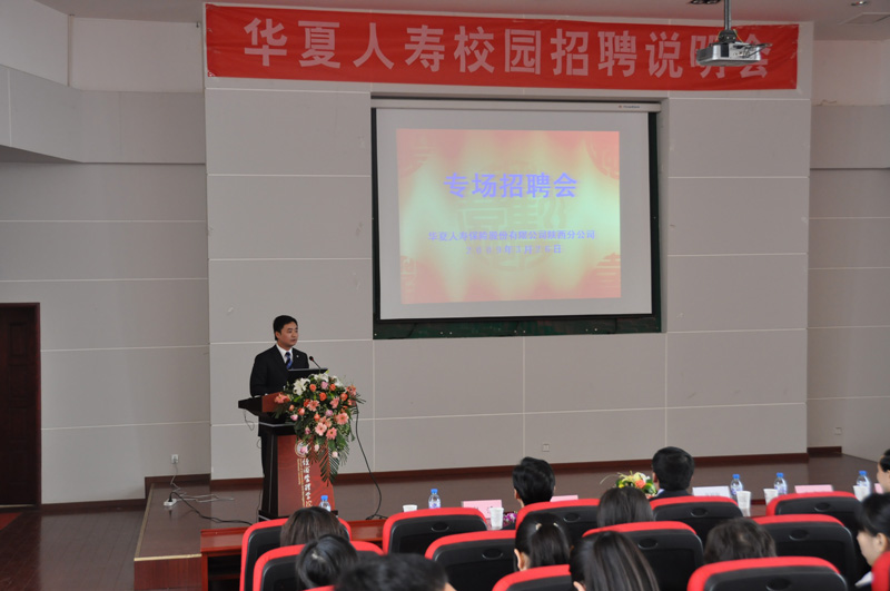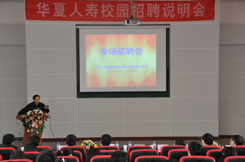 2009年3月26日上午,华夏人寿保险股份有限公司陕西分公司应邀到永利集团官网召开专场招聘会。院党总支书记薛来前老师,华夏人寿保险股份有限公司陕西分公司副总经理陶娟女士、副总经理张毅刚先生及人事部负责人出席了招聘会仪式。招聘会仪式由院党总支副书记樊涛老师主持。