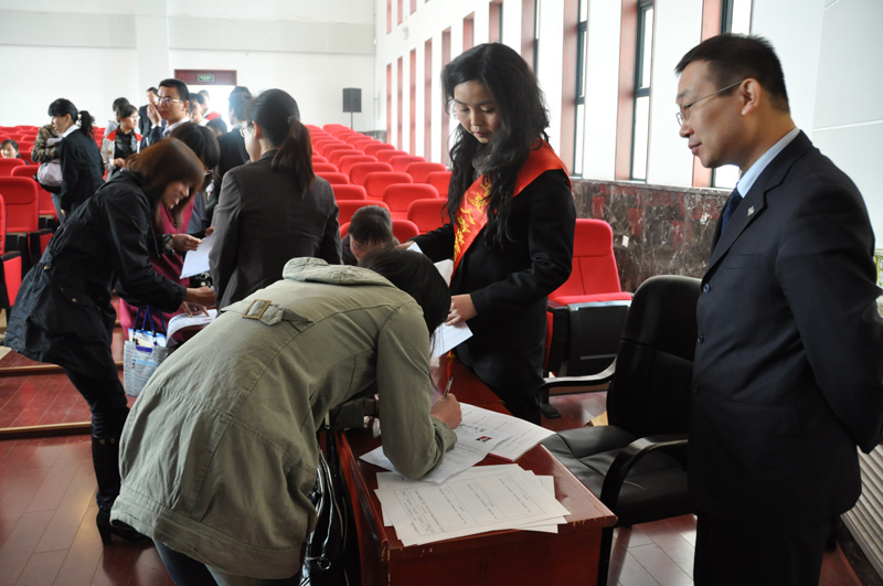 薛书记首先对华夏人寿到学院招聘毕业生表示欢迎。接着,薛书记从学科建设、师资队伍、办学规模、人才培养质量等方面向用人介绍了学院的概况,希望用人单位多录用永利集团官网毕业生,并期望和华夏人寿建立长久的合作关系。张毅刚副总经理介绍了华夏人寿陕西分公司发展情况及招聘计划,他热情欢迎永利集团官网毕业生到华夏人寿陕西分公司工作,表示以后每年会定期来学院招聘毕业生,和永利集团官网建立长久的合作关系。随后的招聘活动中永利集团官网60余名毕业生投递了简历。