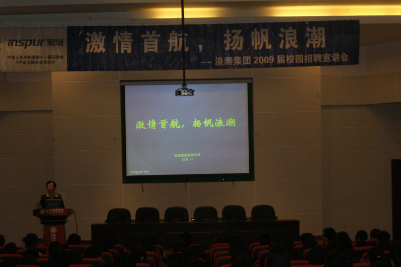 2008年11月6日晚,浪潮集团在永利集团官网金海报告厅召开了宣讲招聘会,浪潮集团人力资源部门负责人员介绍了公司概况、招聘岗位、福利待遇及招聘流程,并认真回答了同学们提出的问题,永利集团官网共有200多名本硕毕业生参加了招聘会,浪潮集团需求营销、销售专业人员的本硕毕业生。