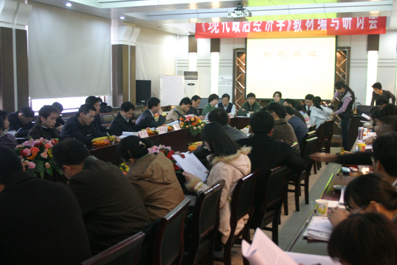 2007年12月8日,永利集团官网与高等教育出版社联合举办了《现代政治经济学》教材编写研讨会。北京大学经济学院副院长黄桂田教授、复旦大学经济学院党总支书记石磊教授、南开大学经济研究所所长柳欣教授、武汉大学经济学院副院长曾国安教授、《经济学家》杂志编审蒋少龙先生、高等教育出版社权利霞编审参加了本次研讨会。研讨会由任保平副院长主持,永利集团3044欢迎光临副校长任宗哲教授、教务处长王正斌教授到会讲话。永利集团3044欢迎光临院长白永秀教授、副院长赵守国教授、严汉平副教授以及教材编写组的成员参加了本次研讨会。在研讨会上,白永秀院长介绍了教材编写的思路和大纲,各位专家针对教材的编写思路和大纲进行了热烈的研讨。