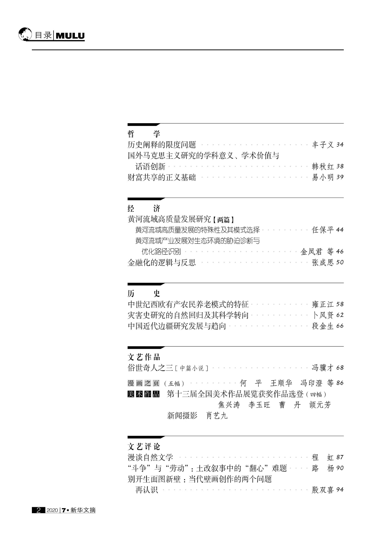 《新华文摘》2020年第7期全文转载永利集团官网任保平教授文章“黄河流域高质量发展的特殊性及其模式选择”,同时作为封面文章加以推荐。该文发表于《人文杂志》2020年第1期。