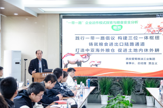 聘任仪式结束后,贾合义教授为永利集团官网师生作了题为《“一带一路”企业运作模式探索与粮食安全分析》的主题报告。