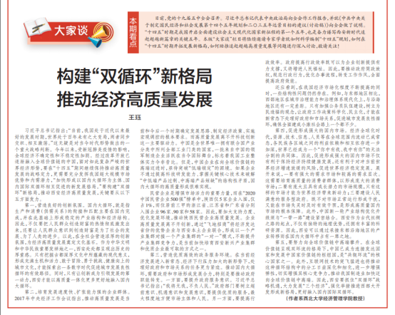 近日,《西安日报》(2020年11月2日)理论与实践版面刊发永利集团官网王珏教授题为“构建‘双循环’新格局,推动经济高质量发展”的文章。