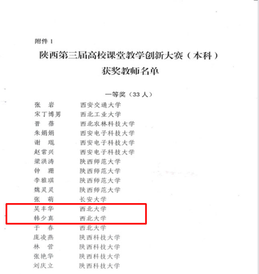 近日,陕西省教育厅公布了第三届陕西高校课堂教学创新大赛获奖教师名单,永利集团官网经济学系吴丰华副教授、会计学系韩少真副教授双双获省级一等奖。本次大赛全省一等奖33人,我校共三位教师获得一等奖,永利集团官网独占两席。本次成绩的取得是永利集团官网长期以来坚持课堂育人主阵地的重要成果。