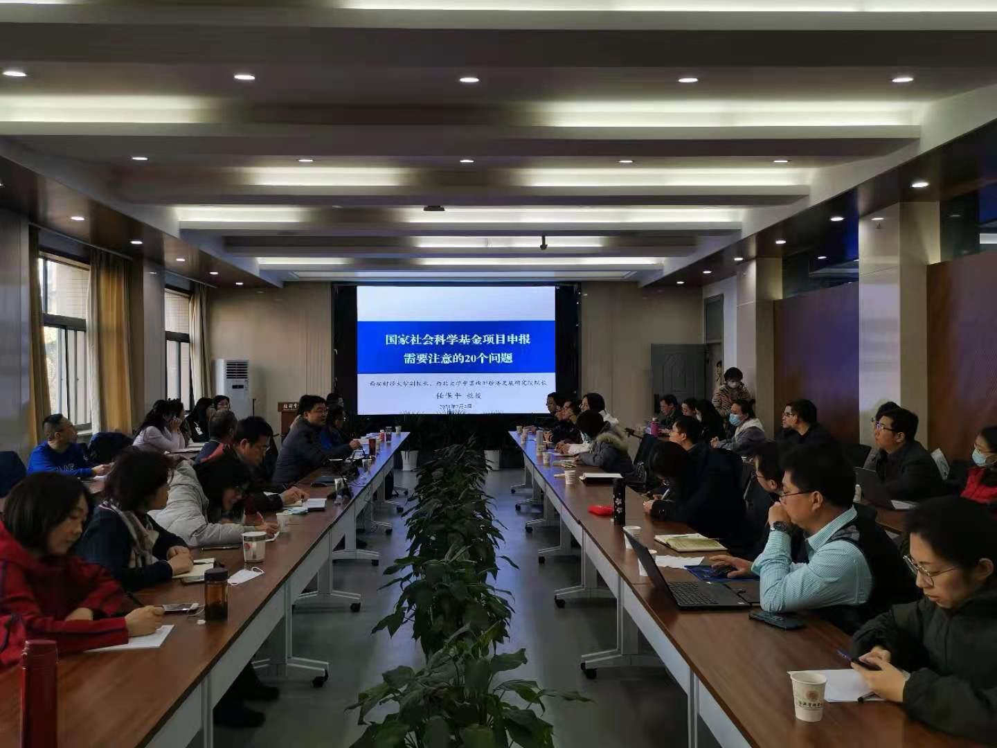 任保平教授的题目是《国家社会科学基金项目申报需要注意的20个问题》,从国家社科基金申报的选题、文献综述、研究内容,重点、难点、创新点以及研究基础的撰写、注意事项等20个方面进行了解读。